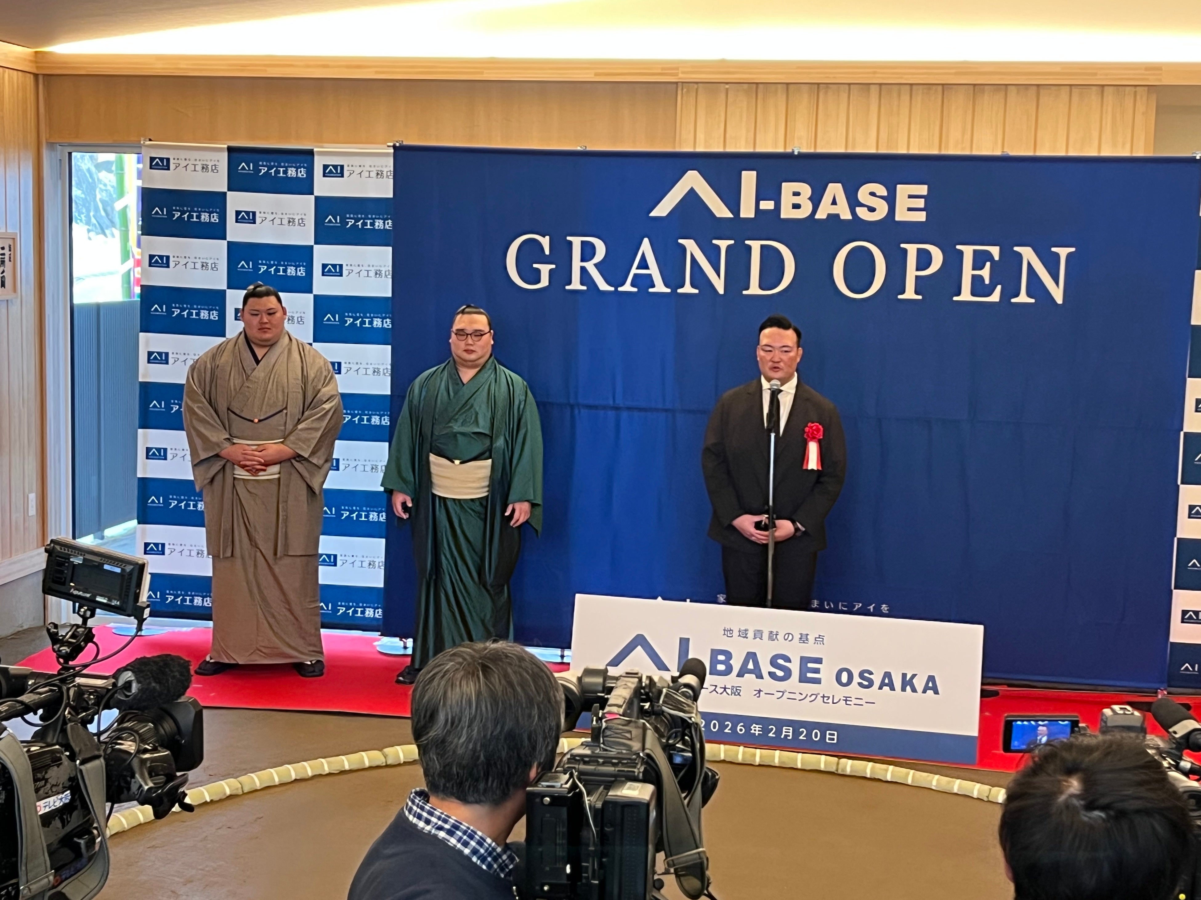株式会社アイ工務店(本社:大阪府大阪市、代表取締役社長:坂井 達也)は、2026年2月20日(金)、大阪府東大阪市に開設した店舗型多目的施設「アイベース大阪」にて、東大阪市との包括連携協定調印式とお披露目会を実施。本施設は、資本提携先である温泉旅館「ホテルセイリュウ」敷地内に開設。地域と企業が未来を共に築く場となることを目指し、二所ノ関部屋の大阪場所における宿舎・稽古場としても使用される土俵を常設し、日本の伝統文化と木造建築技術を融合した空間づくりを特徴としています。