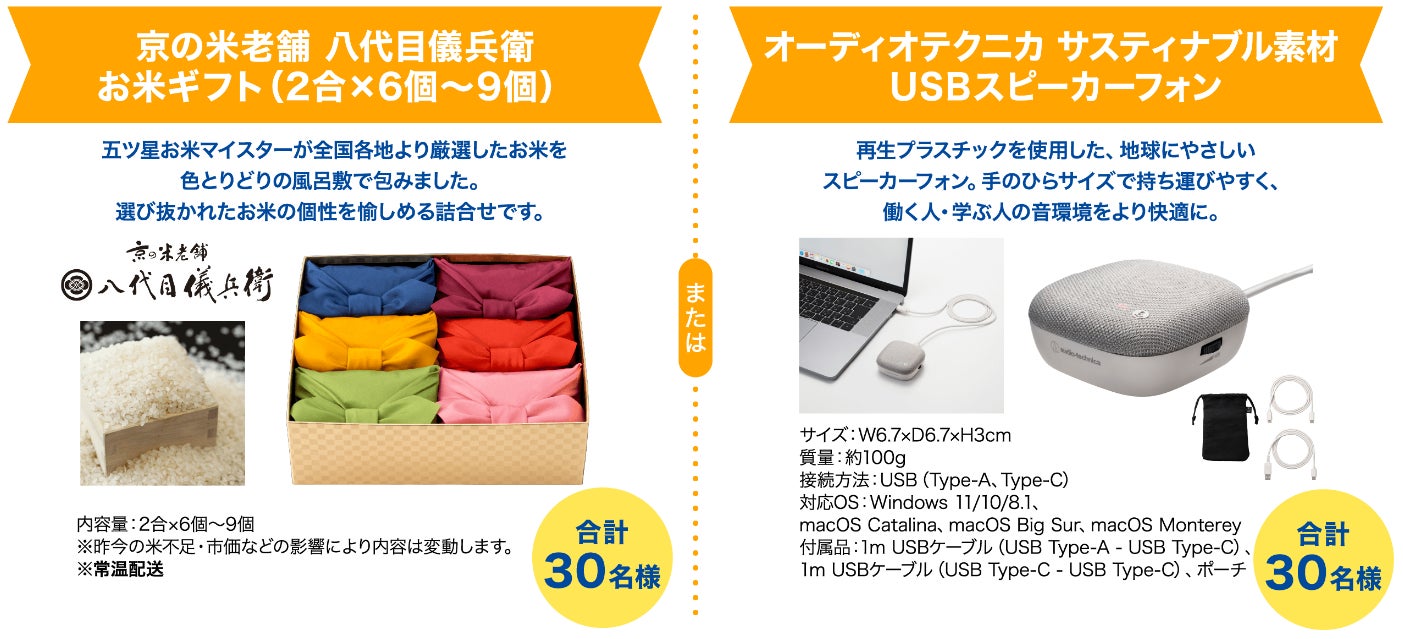 京の米老舗 八代目儀兵衛 お米ギフト(2合×6個~9個) または オーディオテクニカ サスティナブル素材 USBスピーカーフォン
