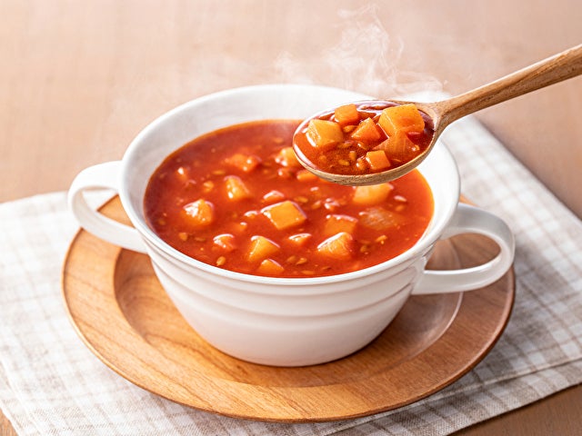ローストアマニを具材に採用し、プチプチとした食感ととろみで満足感のある“食べるスープ”に仕上げました。オメガ3系脂肪酸が一食で1.6g摂れるのもうれしいポイントです。北海道産のたまねぎ、じゃがいも、にんじんを使用しています。具材たっぷりで、ココナッツオイル、野菜ブイヨン、ハーブで味の深みを加えたミネストローネが、忙しい毎日の食に彩りを添えます。