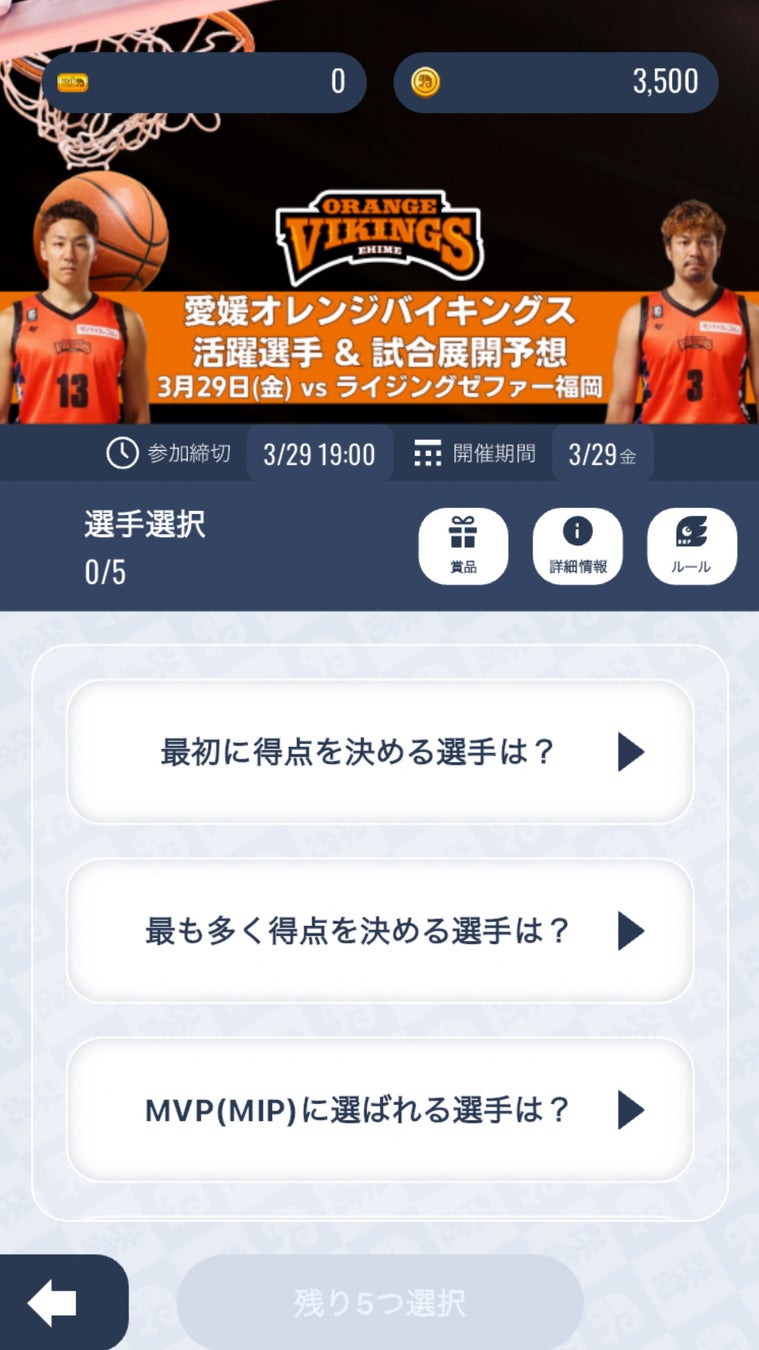 スポーツ予想アプリ「なんドラ」で愛媛オレンジバイキングス 3月29日(金)・30日(土)ホームゲームの活躍選手&試合展開予想を開催