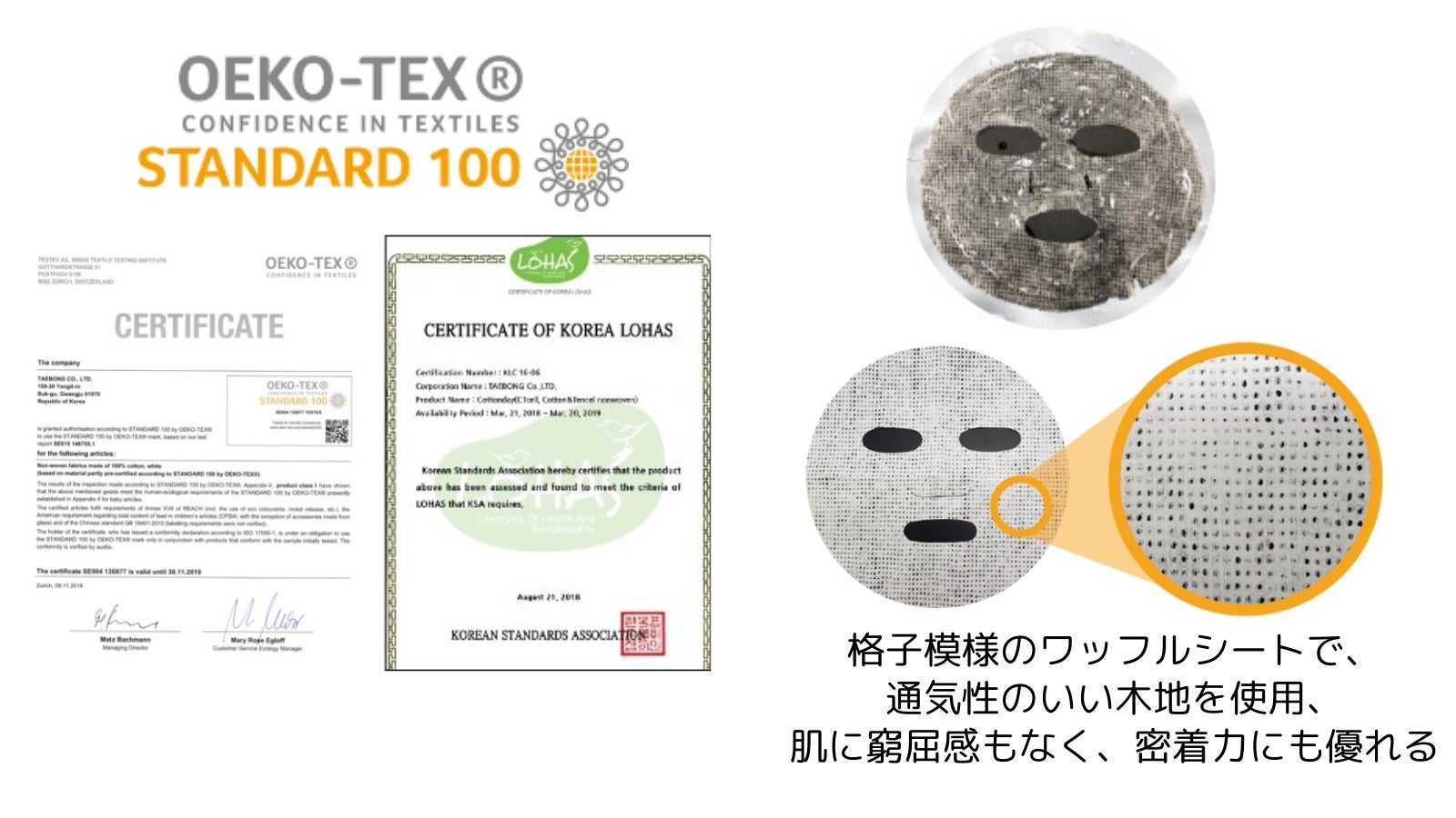 1:世界最先端の「安全性」と「信頼性」を証明する、世界トップレベルの繊維認証エコテックスの認証を受けた100%純綿オーガニックワッフル生地を使用