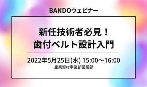 バンドー化学株式会社(本社:兵庫県神戸市)は、ウェビナー「新任技術者必見!歯付ベルト設計入門」を開催いたします。