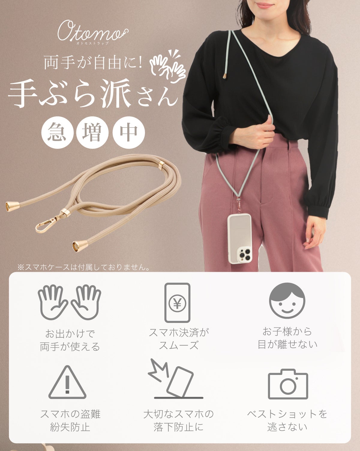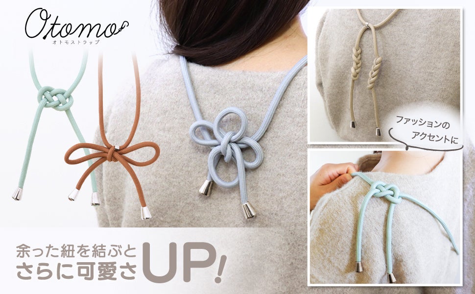 結びアレンジが可愛いスマホ ショルダー「OTOMOストラップ」にメンズにもピッタリなシルバー金具が登場!太目の紐で肩掛け斜め掛けしても痛くない、おしゃれなストラップで春も快適に