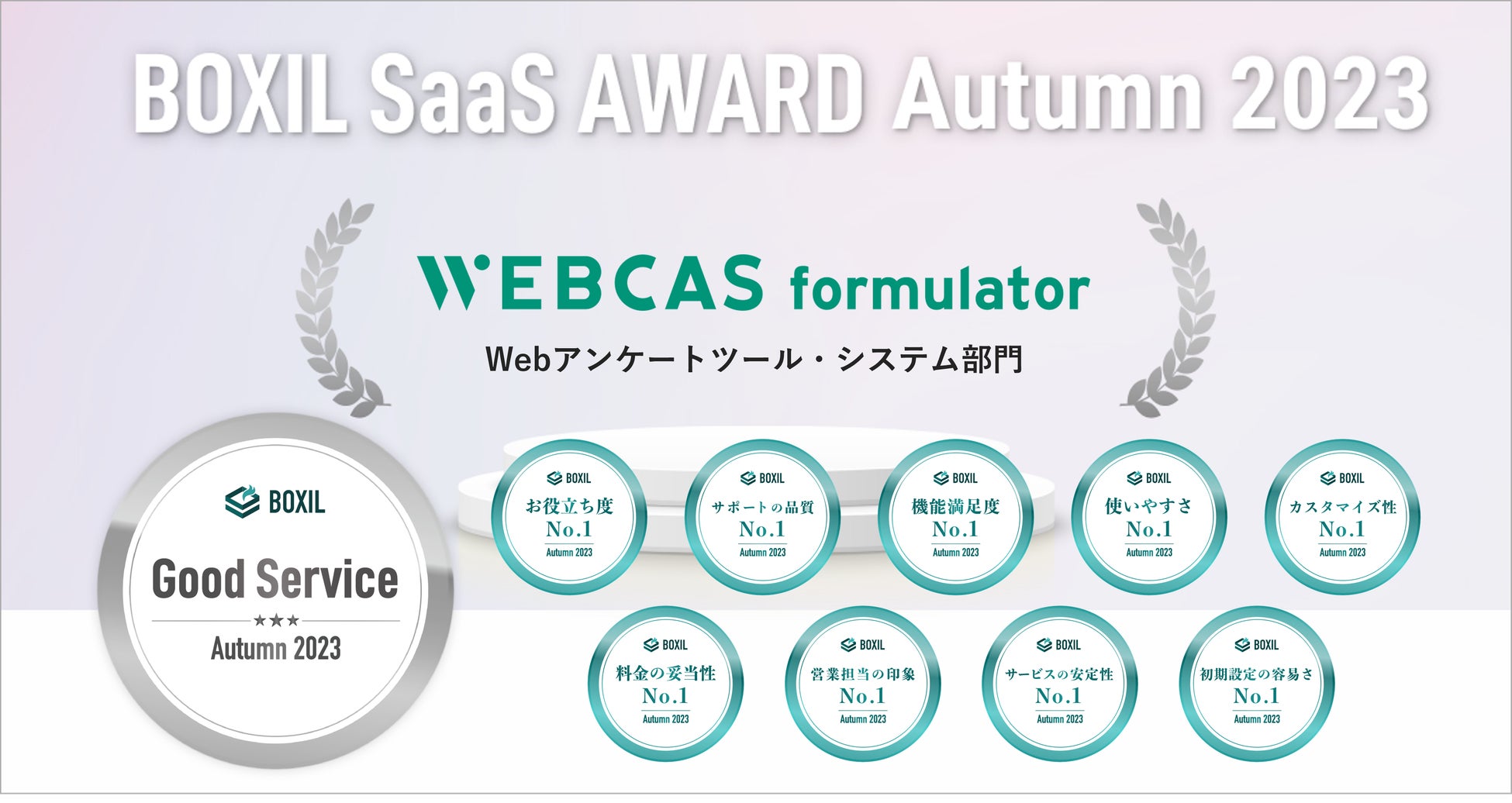 アンケート・フォーム作成システム「WEBCAS formulator」が「BOXIL SaaS AWARD Autumn 2023」で「Good Service」に選出