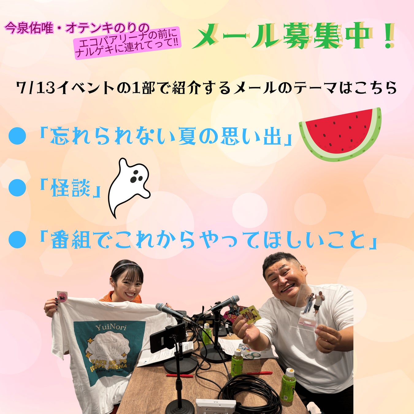 「今泉佑唯・オテンキのりの私たちをエコパアリーナに連れてって!!」の番組イベントを7月13日(日)東京・西新宿ナルゲキで開催。ただいま来場・配信チケットを発売中!