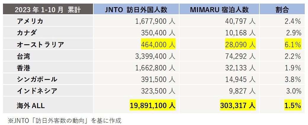 特にオーストラリアは約16人に1人(6.1%)がMIMARUに宿泊されました。