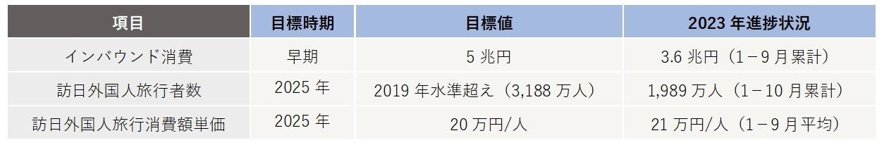 2023年3月、観光庁はコロナ後の観光立国の復活に向け新たな「観光立国推進基本計画」を発表、「持続可能な観光地域づくり戦略」「インバウンド回復戦略」「国内交流拡大戦略」の3つの戦略を掲げました。2023年直近データにて、2025年までの目標値、MIMARUと比較して振り返ります。
