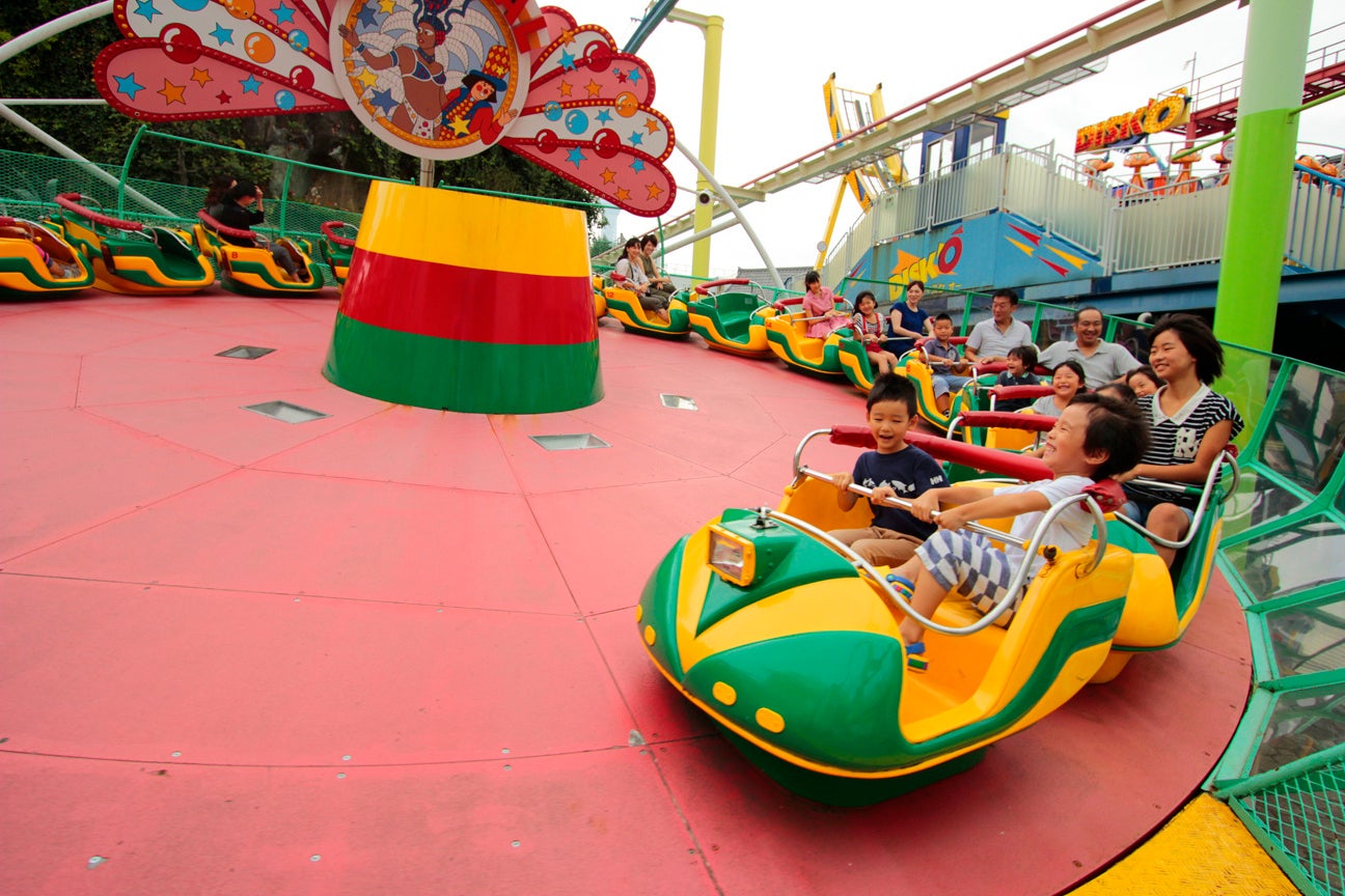 傾斜角12度のステージの上で、とぐろを巻いたへびのようにぐるぐる回るアトラクションです。2歳から乗車でき(要付添い)、お子様のスリルライドデビューとしても選ばれています。