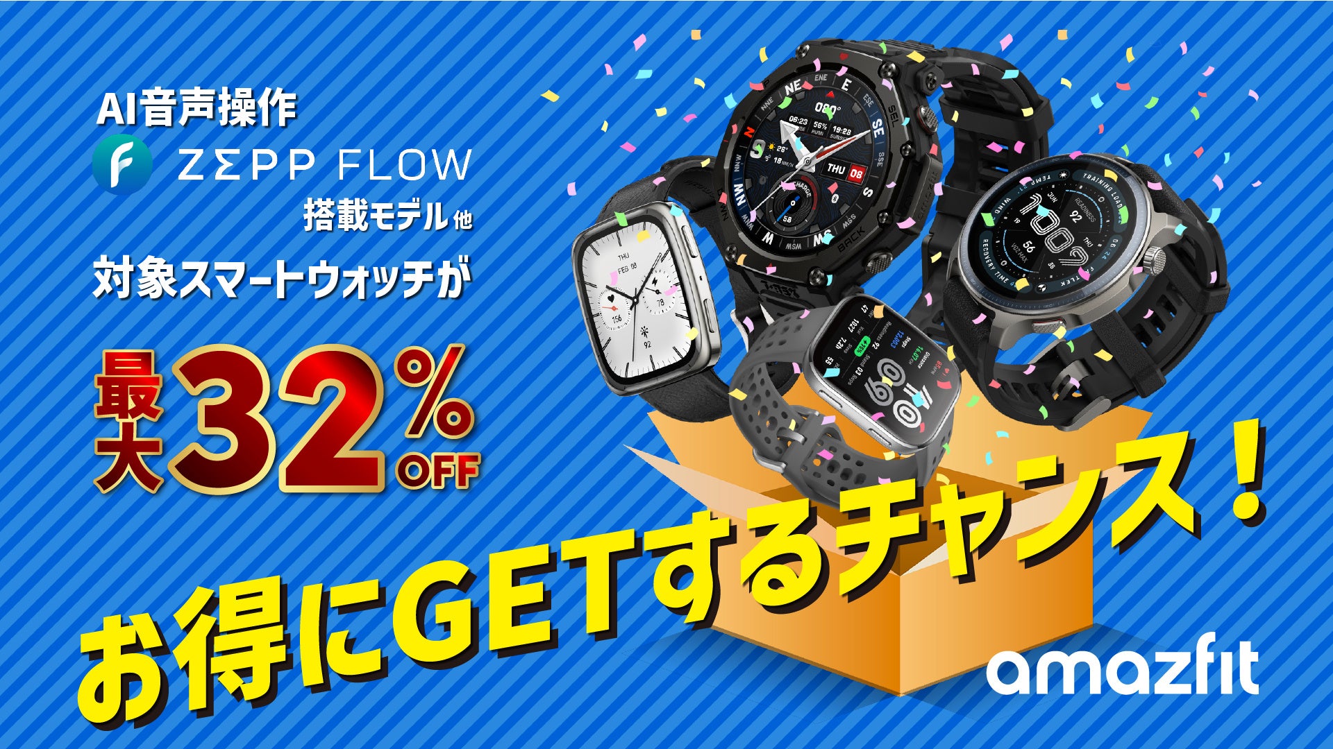 Amazfitの2025年最新モデル「Amazfit Balance 2」「Amazfit Active 2 プレミアム」「Amazfit Bip 6」などの新製品がセール初参加となるほか、世界初※GPT-4o搭載の「Amazfit Balance」、コスパ最高の「Amazfit Active」など、人気製品を最大32%OFFの特別価格でご提供します。