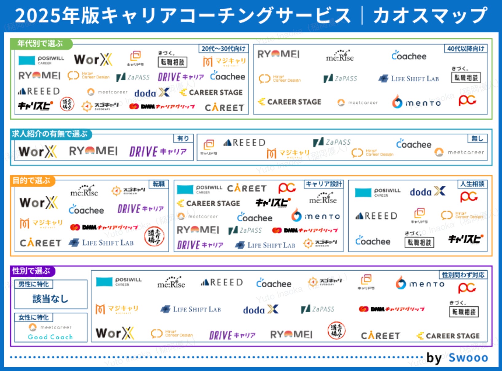 Swoooのキャリアを運営する合同会社ゼロイチスタート(本社:東京都中央区)は、「2025年度 キャリアコーチングサービスカオスマップ」を公開しました。