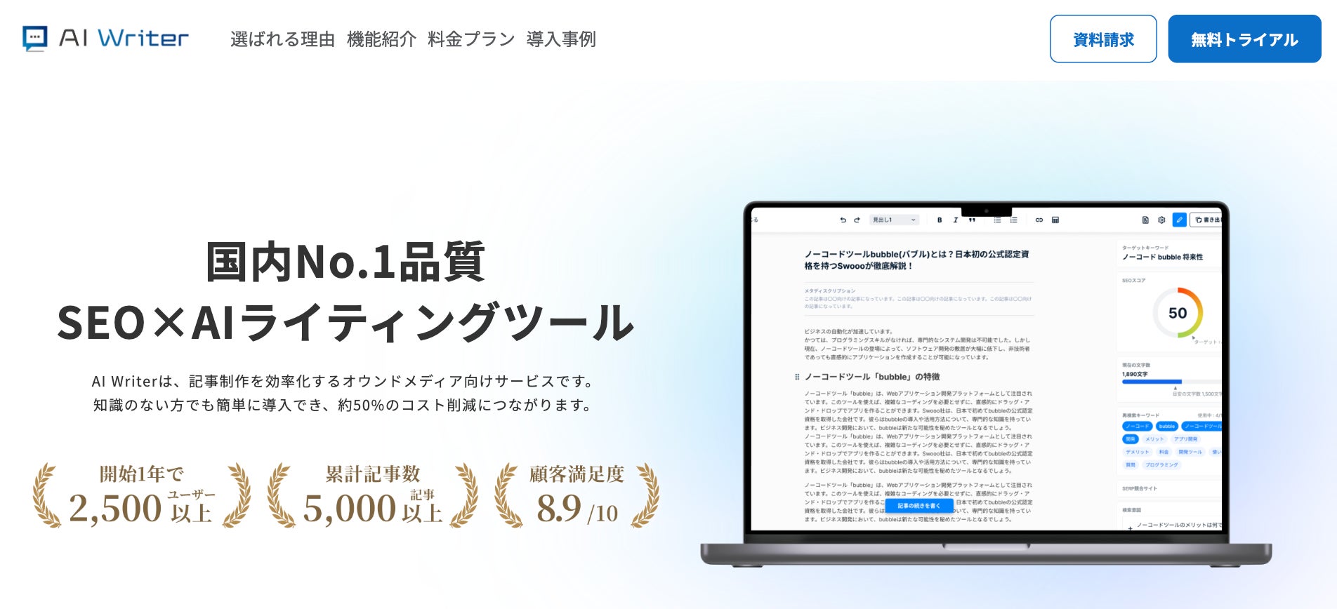 ChatGPTを活用した記事作成ツールです。自社独自のプロンプトを用いることで、従来よりも2倍早く高品質な記事を作成いただけます。