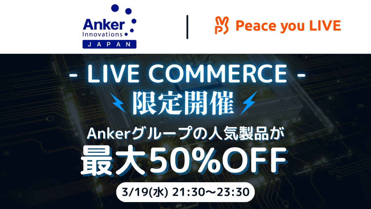 株式会社ピースユー(本社:東京都千代田区、代表取締役:藤瀬公耀)が運営する日本最大級のライブコマースアプリ「Peace you LIVE」(以下「ピースユーライブ」)は、2025年3月19日(水)に、米国・日本・欧州を中心にデジタル関連製品でトップクラスの販売実績を誇るAnkerグループの日本法人、アンカー・ジャパン株式会社(本社:東京都千代田区、代表取締役CEO:猿渡 歩)との第二弾コラボ企画として、「Anker Store 渋谷」よりライブコマースを実施します。