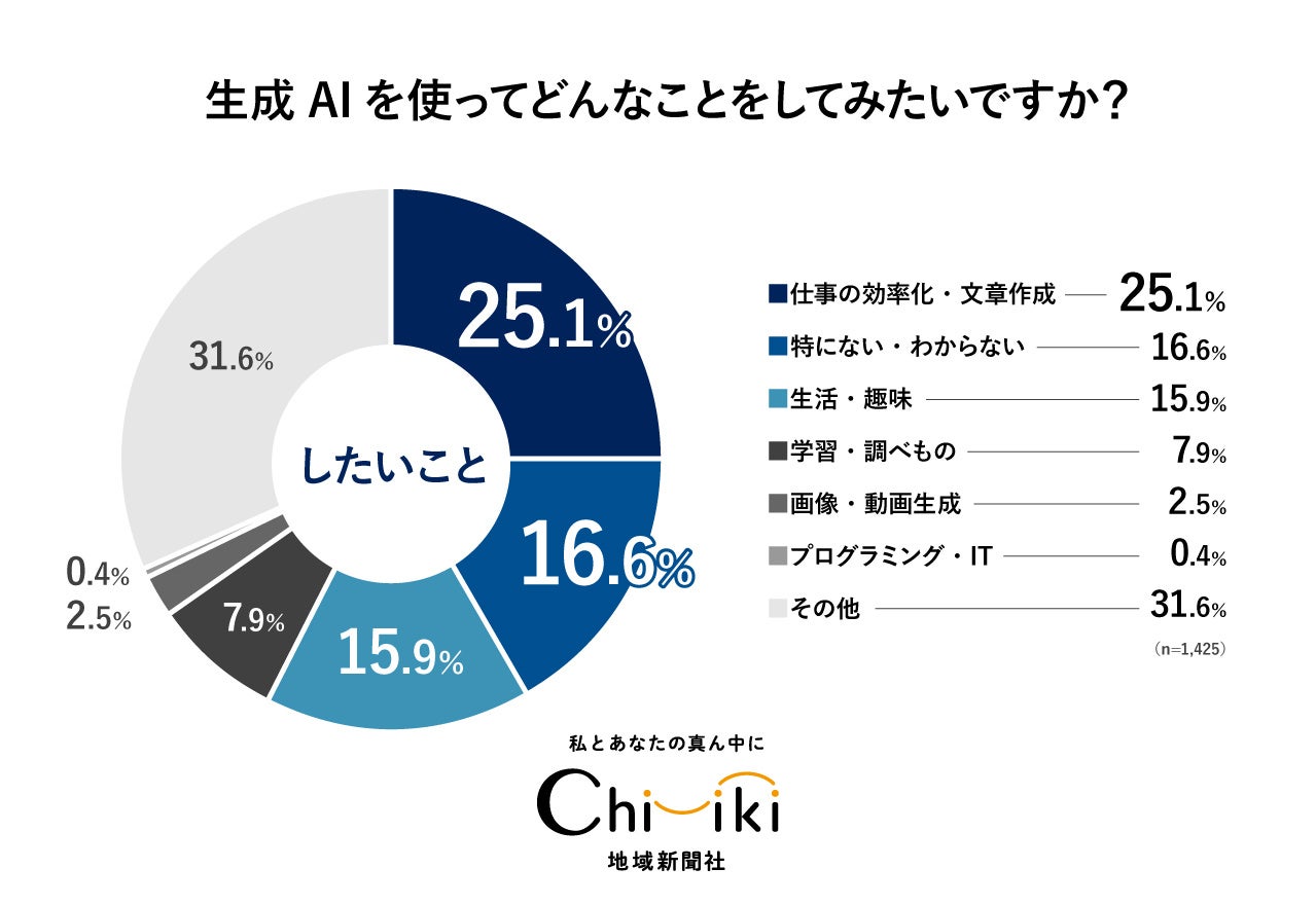 株式会社地域新聞社(本社:千葉県八千代市、代表取締役:細谷 佳津年、証券コード:2164、以下「当社」といいます。)は、『ちいき新聞』2026年3月6日号にて企画している「生成AI特集号」のため、地域新聞社メルマガ会員56,625名を対象に生成AIに関するアンケートを行い、1,425名から有効回答をいただきました(※)。