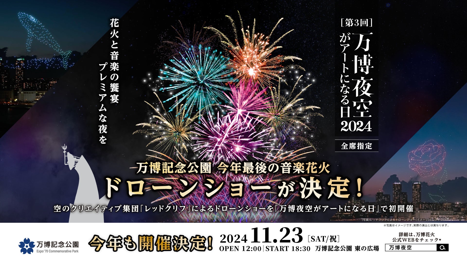 ドローンショーを企画・運営する株式会社レッドクリフ(本社:東京都港区、代表取締役:佐々木 孔明、以下「レッドクリフ」)は、2024年11月23日(土・祝)、万博記念公園で開催される「万博夜空がアートになる日」において、本イベント初となるドローンショーを実施します。当日は500機のドローンの一部に花火を搭載し、夜空と宇宙をテーマにした壮大な世界観で、大阪の夜空を彩ります。