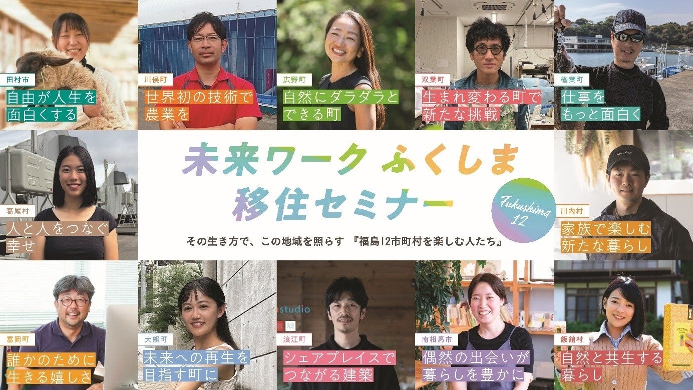 「ふくしま12市町村移住支援センター」は、福島12市町村(※)で「働くこと、暮らすこと、チャレンジすること」を検討する方に向けた移住セミナーを、今年度は全5回、東京・仙台・大阪にて開催いたします。今年度初回セミナーは、7月12日(土)東京にて「ふくしま12チャレンジストーリー 私がこの場所を選んだワケ」をテーマに開催します。