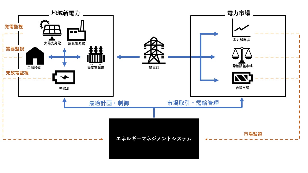 北九州パワーは、北九州市が構想する北九州地域におけるエネルギーの地産地消および循環型社会の実現を目指し、廃棄物発電設備で発電された電力の活用に加え、北九州地域の再生可能エネルギーを最大限活用することに取り組んでおります。当社は、廃棄物発電や太陽光発電などの再生可能エネルギー発電設備および蓄電池を最適運用するために当社が開発・保有するエネルギーマネジメントシステム(EMS)※2を提供し、北九州パワーの取り組みに活用いたします。