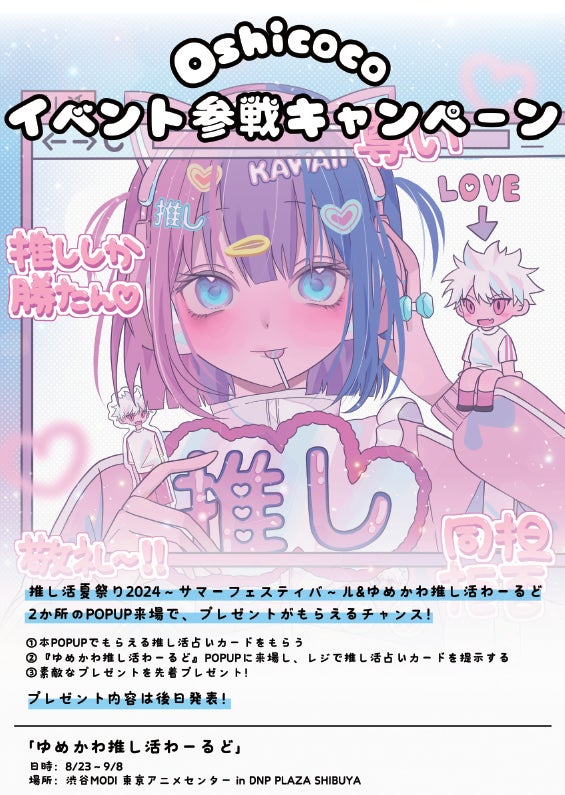 また、先行開催の「推し活夏祭り2024~summer festival~」への来場と、本ポップアップの来場で素敵なプレゼントがもらえるキャンペーンも実施予定です。