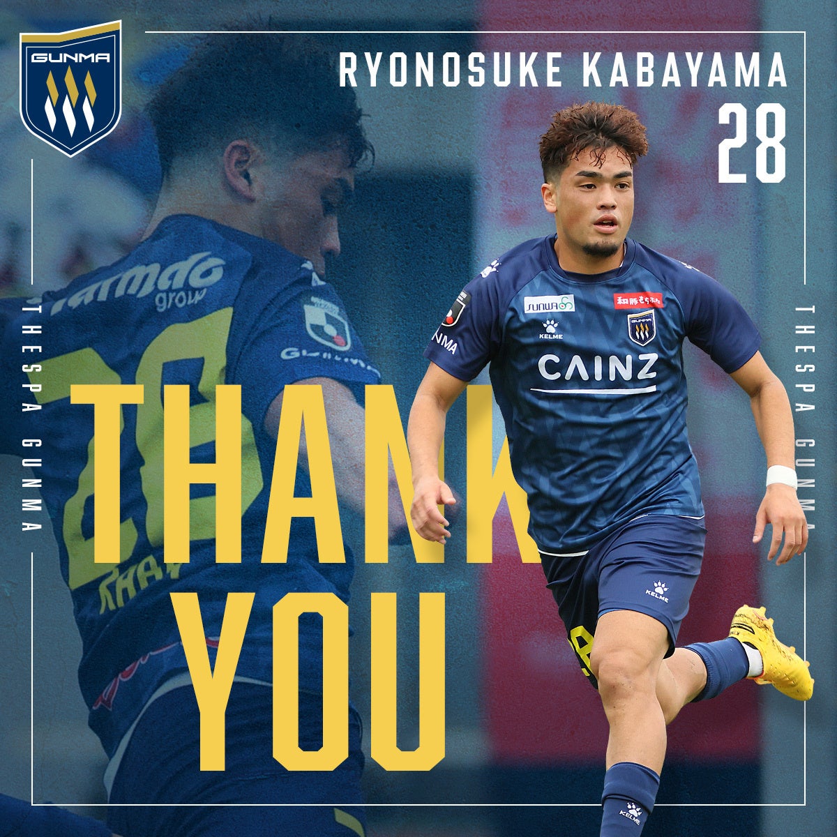 「半年間ありがとうございました。チームを救うことができなくて、とても悔しく思っています。群馬での経験や悔しさを活かして次のチームでも頑張りたいと思います。来年昇格争いが出来ることを楽しみにしています!ありがとうございました!」