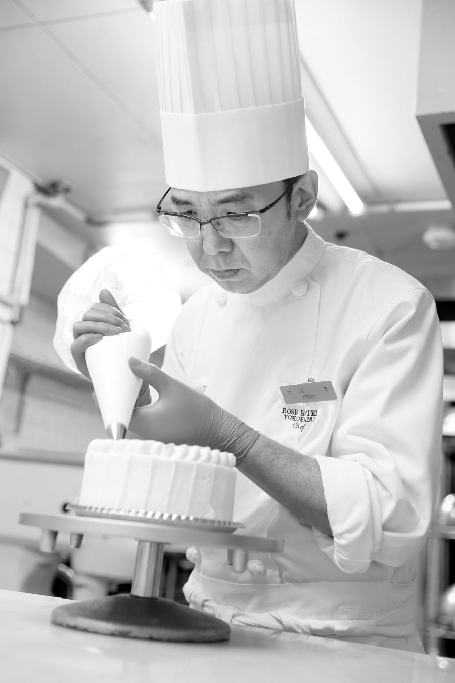 製菓専門学校卒業後、パンドラへ入社。経験を積み、1992年に渡尼。インドネシア共和国、ジャカルタの店舗立ち上げに携わる。帰国後数々の店を経験し、メアリーウェディング、アトリエリーブのシェフパティシエとして勤務。2020年12月よりローズホテル横浜に着任。