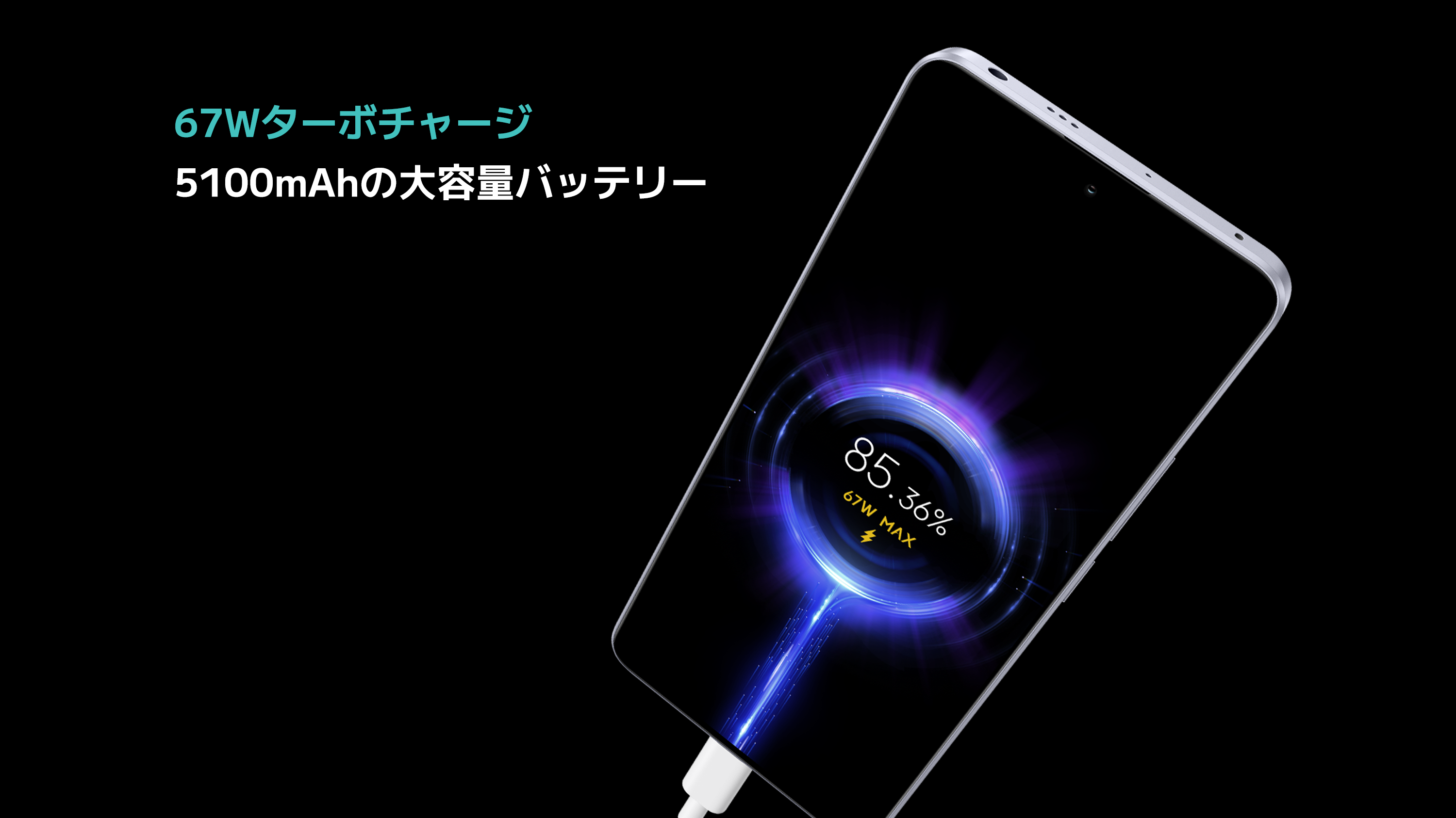 ※急速充電対応の「Xiaomi 67W ターボチャージ対応急速充電器・ケーブルセット」(別売り)をご利用の場合。1~50%までの最短充電時間。充電時間は使用環境等により異なります。