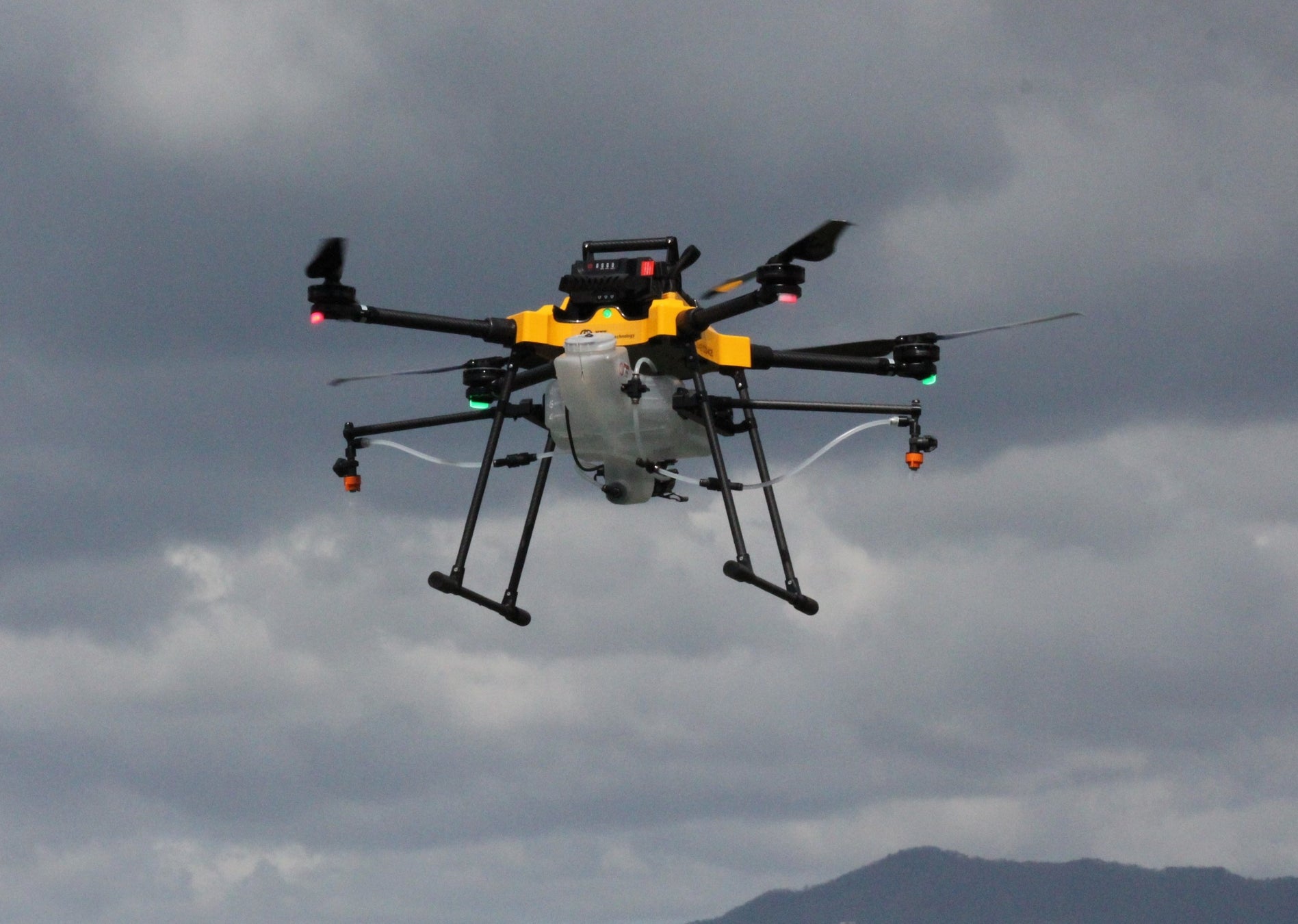 (1) 農業ドローン「AC101」(https://e-drone.tech/)によるフライト・農薬散布デモ