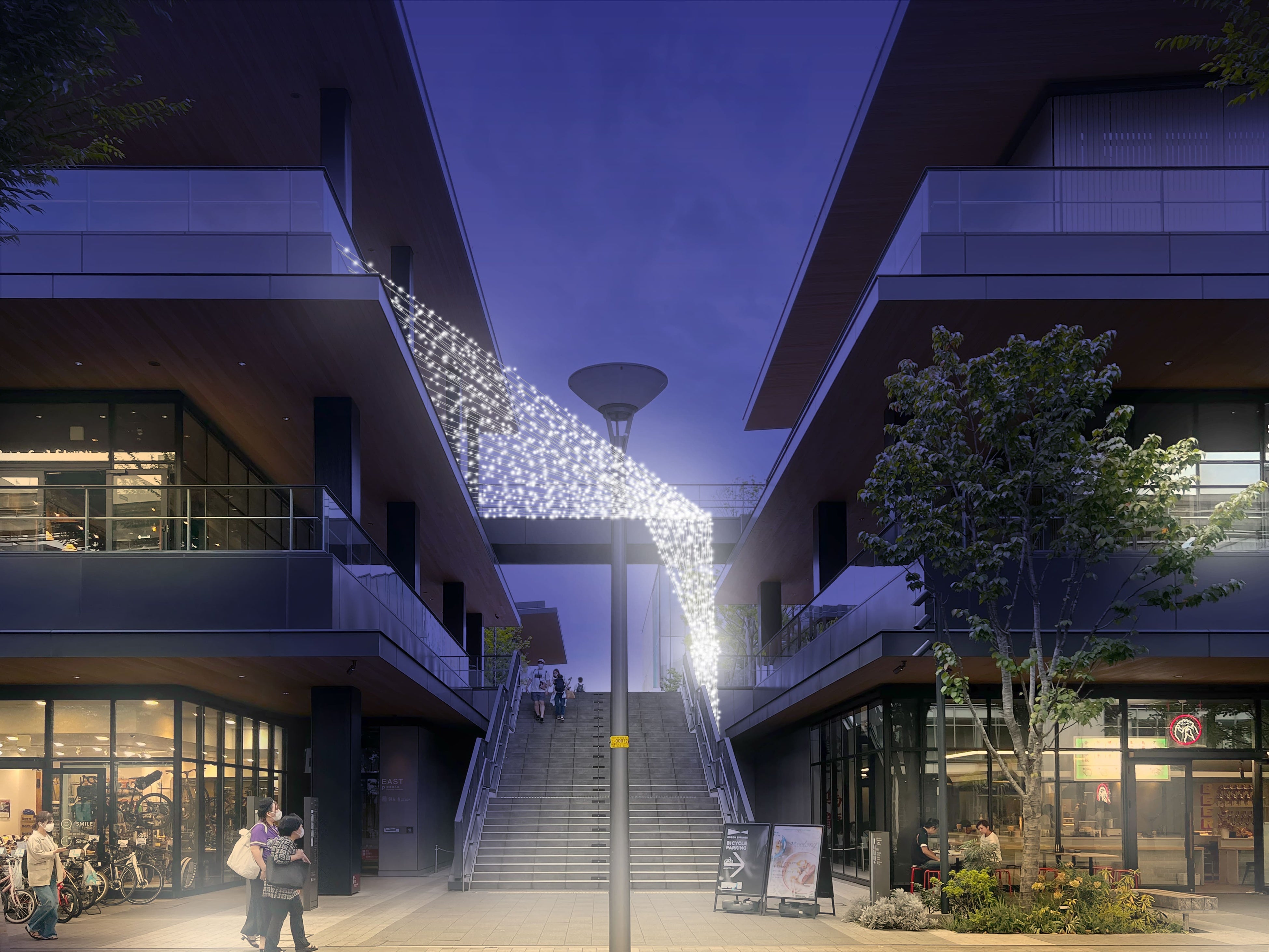 2020年4月にオープンした、ウェルビーイングをテーマとした複合施設です。水と緑豊かな約1万㎡の中央広場を中心に、最上階にインフィニティプールを有するホテル、多摩地区最大規模約2,500席の多機能ホール、ショップ・レストラン、オフィスなどが配置されています。
