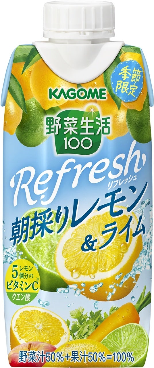 カゴメ株式会社(代表取締役社長:山口聡、本社:愛知県名古屋市)は、「野菜生活100 Refresh 朝採りレモン&ライム」の330mlを、2023年5月23日(火)より、春夏の季節限定にて全国で発売いたします。(在庫がなくなり次第販売終了)