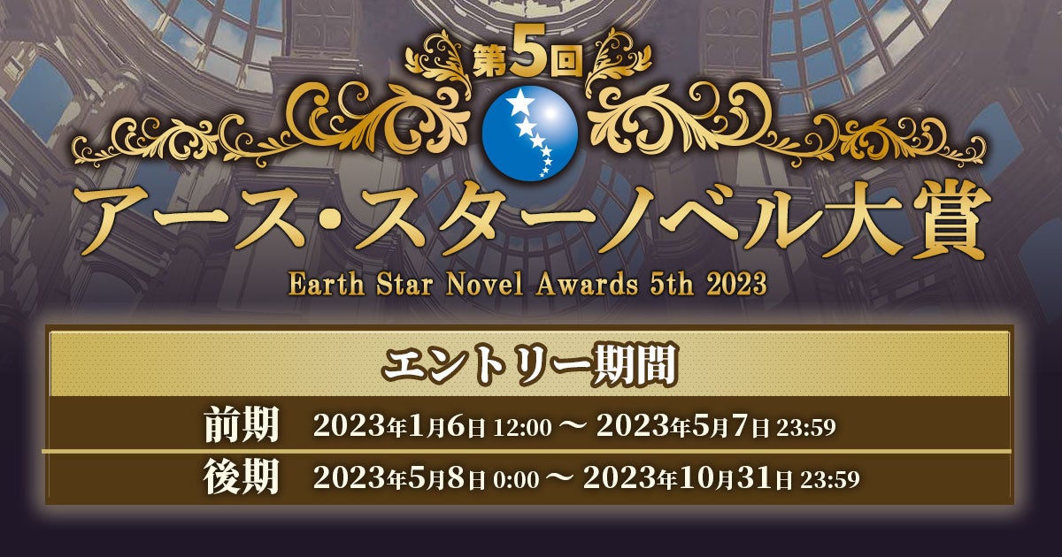 <後期>開始:2023年5月8日(月)0:00 締切:2023年10月31日(火)23:59 発表:2023年12月下旬ごろ予定- 各賞のご紹介(アース・スターノベル部門・アース・スター ルナ部門ともに)