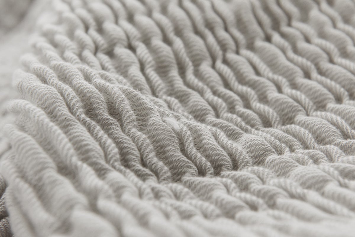 ガーゼ表層に凹凸があることで、肌に触れる面積が少なくなるのも、このガーゼケットの特徴。