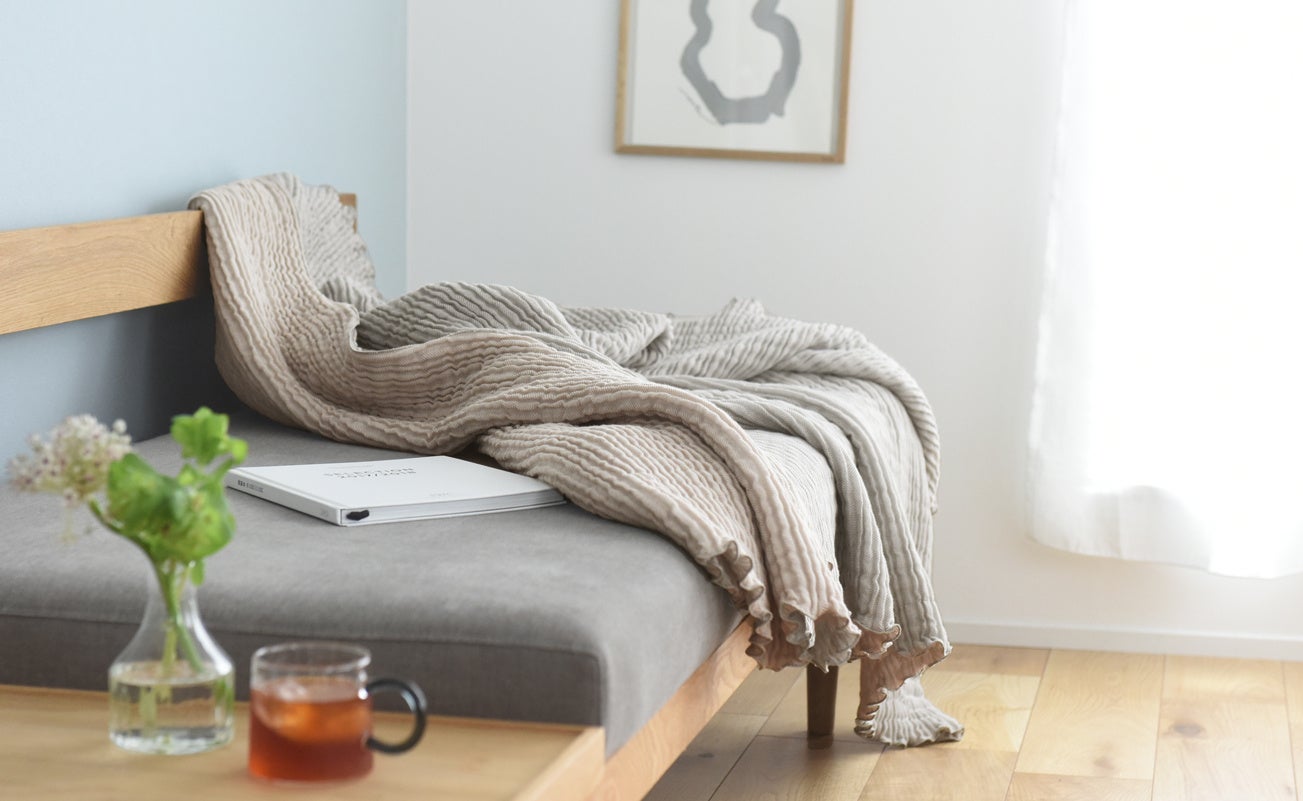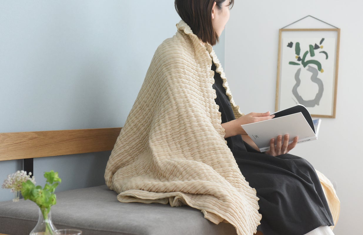 冷房の冷たい風から体を守り、それでいて厚すぎないから涼しく快適。夏の夜に理想的な掛け心地の「インナーパイル ガーゼケット」が、bon moment(ボンモマン)より、5/15(月)発売。