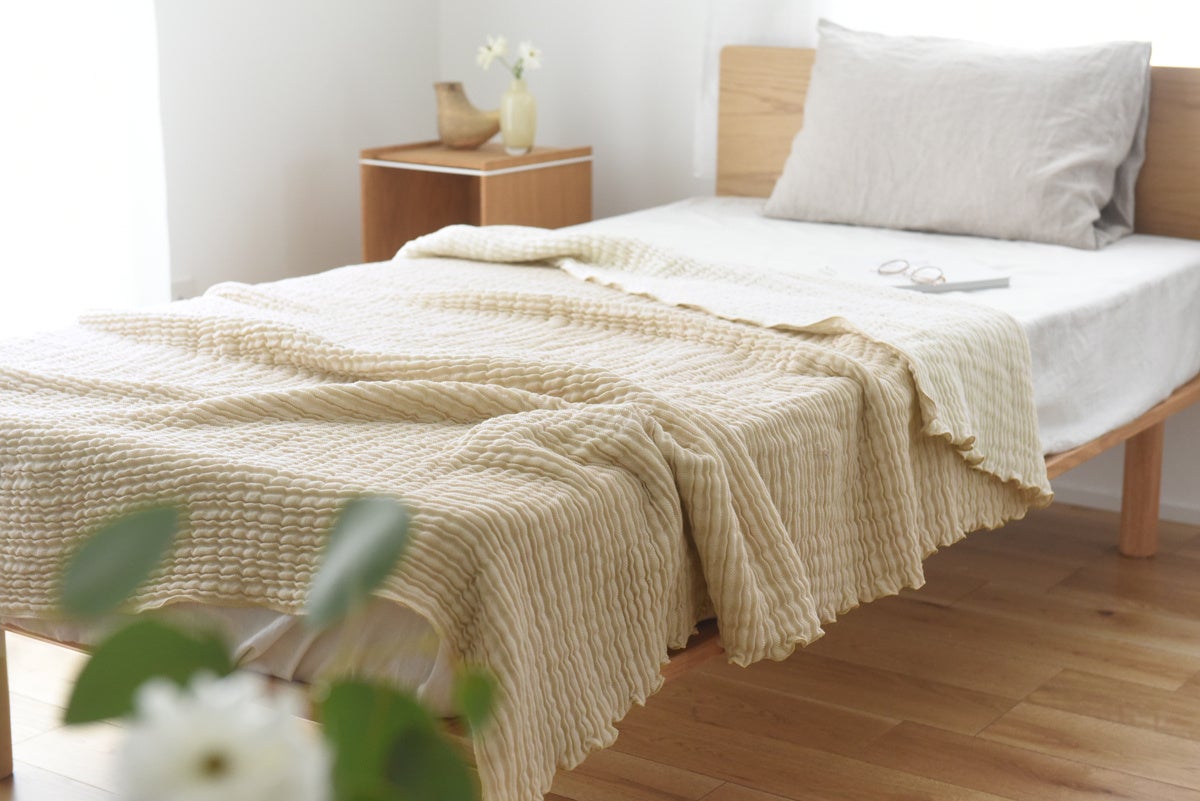 厚すぎず薄すぎず、「体の熱を留める」レベルの保温力が、夏の掛布団の理想形。