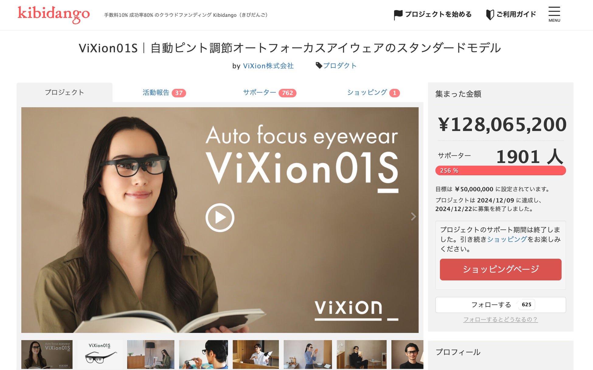【支援総額1億2800万円を達成!】オートフォーカスアイウェア「ViXion01S」、クラウドファンディングプロジェクトが完了!