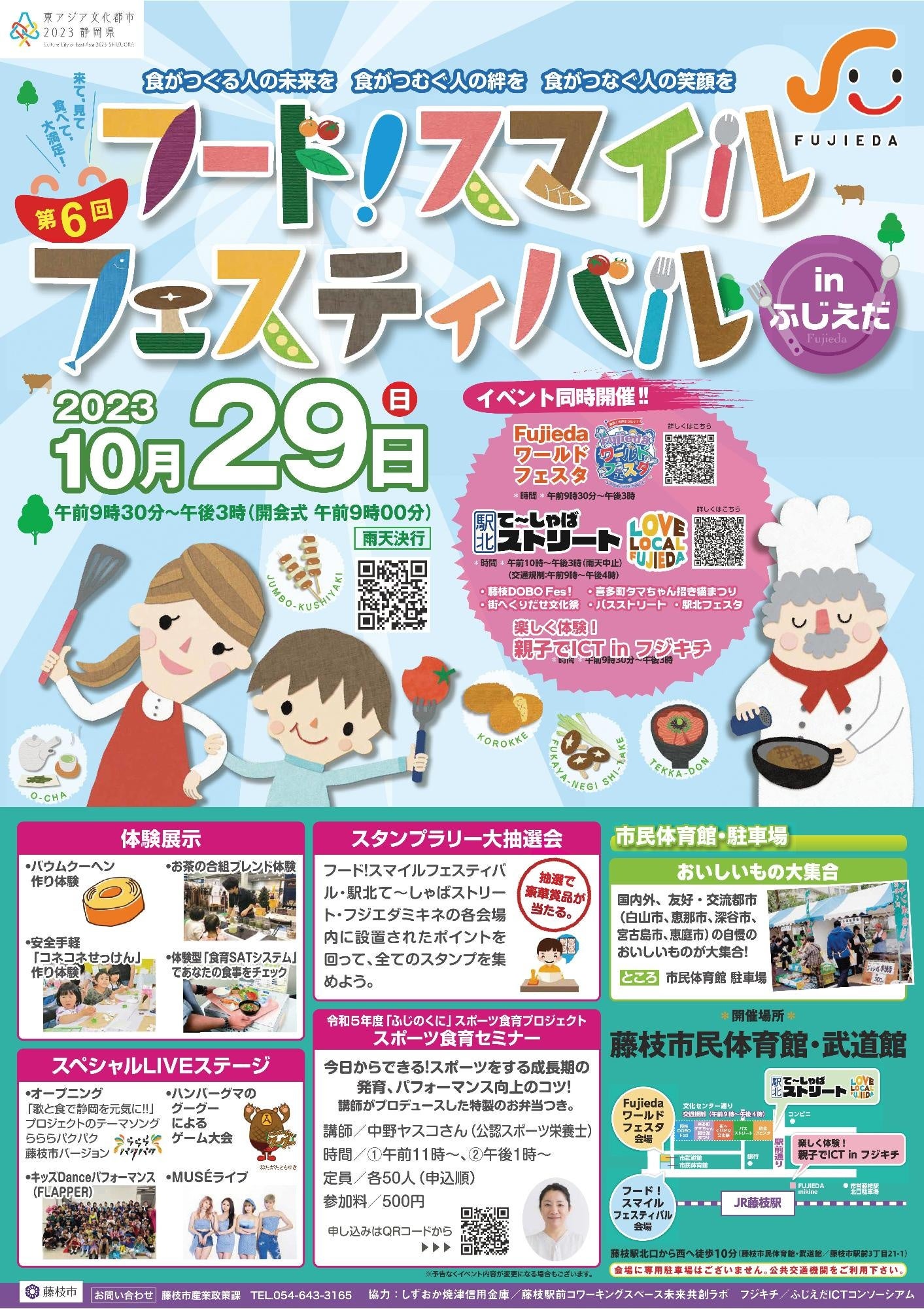 その他:同時開催の「ふじえだワールドフェスタ」(市武道館)、「駅北て~しゃばストリート」(文化センター通り)、「親子でSNS等ICT体験」(フジキチ)と連携し藤枝駅北エリアの賑わいを創出