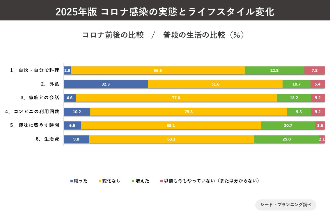 【コロナ前後のライフスタイルの変化を調査】実感する後遺症を数値化、日常生活では外食回数の違いを感じる結果に