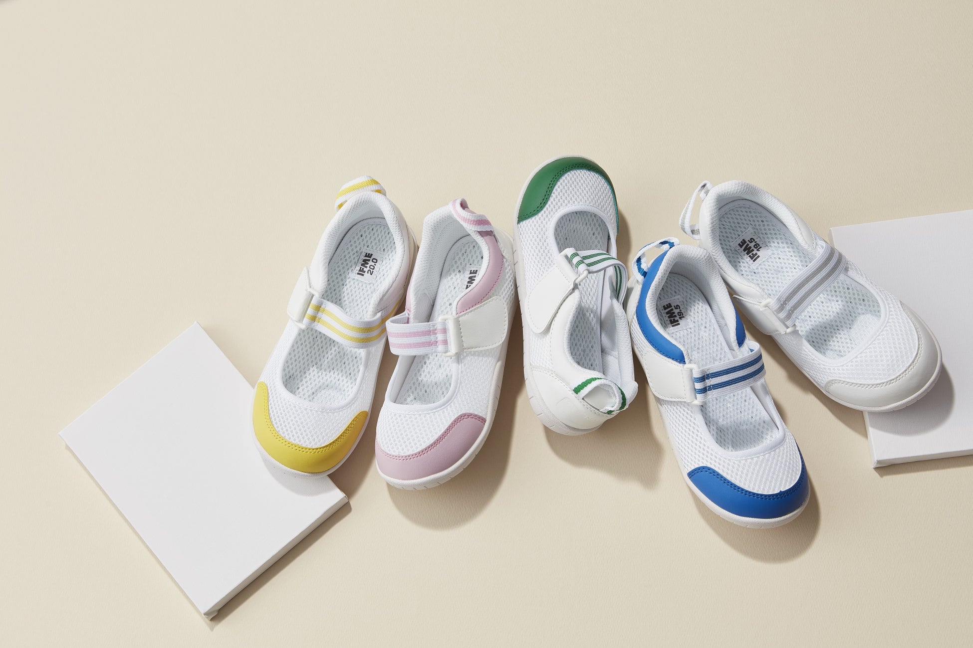 IFMEが子どものことを考えて開発した上履き商品。足蒸れを防ぐため、通気孔を設けたアウトソール「息するソール」、アッパーにも目の粗いダブルラッセルのメッシュを採用しました。さらに、こまめにお洗濯できるようにスペアインソールが付属するなど、子供が長時間履くことを想定して作られた上履きは、快適に過ごせる為のポイントが満載です。