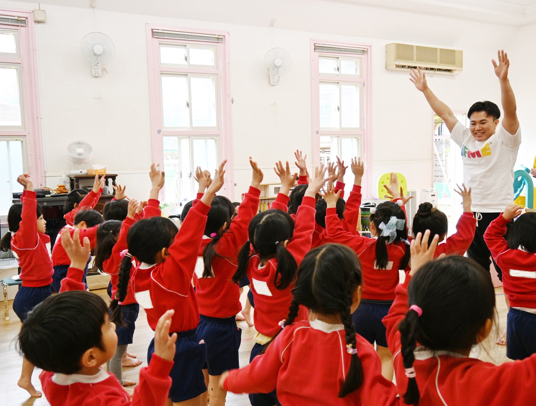 続く第二問、足を使った「足ジャンケン」に関するクイズでは、IFMEお兄さんとのじゃんけん大会へと発展。「チョキができない」「もっとやりたい!」と初めての体験に大盛り上がり!足を動かす意識を持ってもらえたようです。