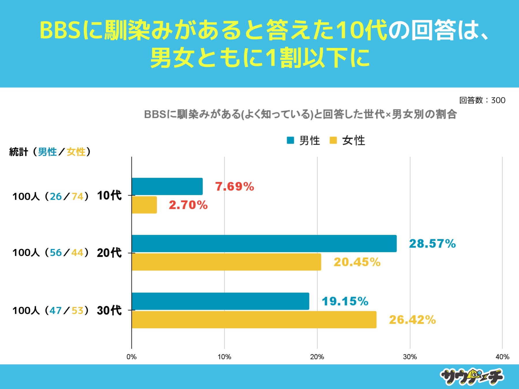【BBSに馴染みがあると答えた10代の回答は、男女ともに1割以下に】