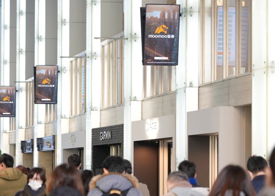 国内でアプリダウンロード数150万件(※2)を突破したmoomoo証券株式会社(ムームー、本社:東京都渋谷区、代表取締役社長:伊澤フランシスコ、以下「moomoo証券」)は、米国株No.1アプリ広告を、年始から1月下旬にかけて東京・丸の内エリアをはじめ、都内の大型スクリーン・オフィスビルのエレベーター、タクシーなどの媒体で展開いたします。