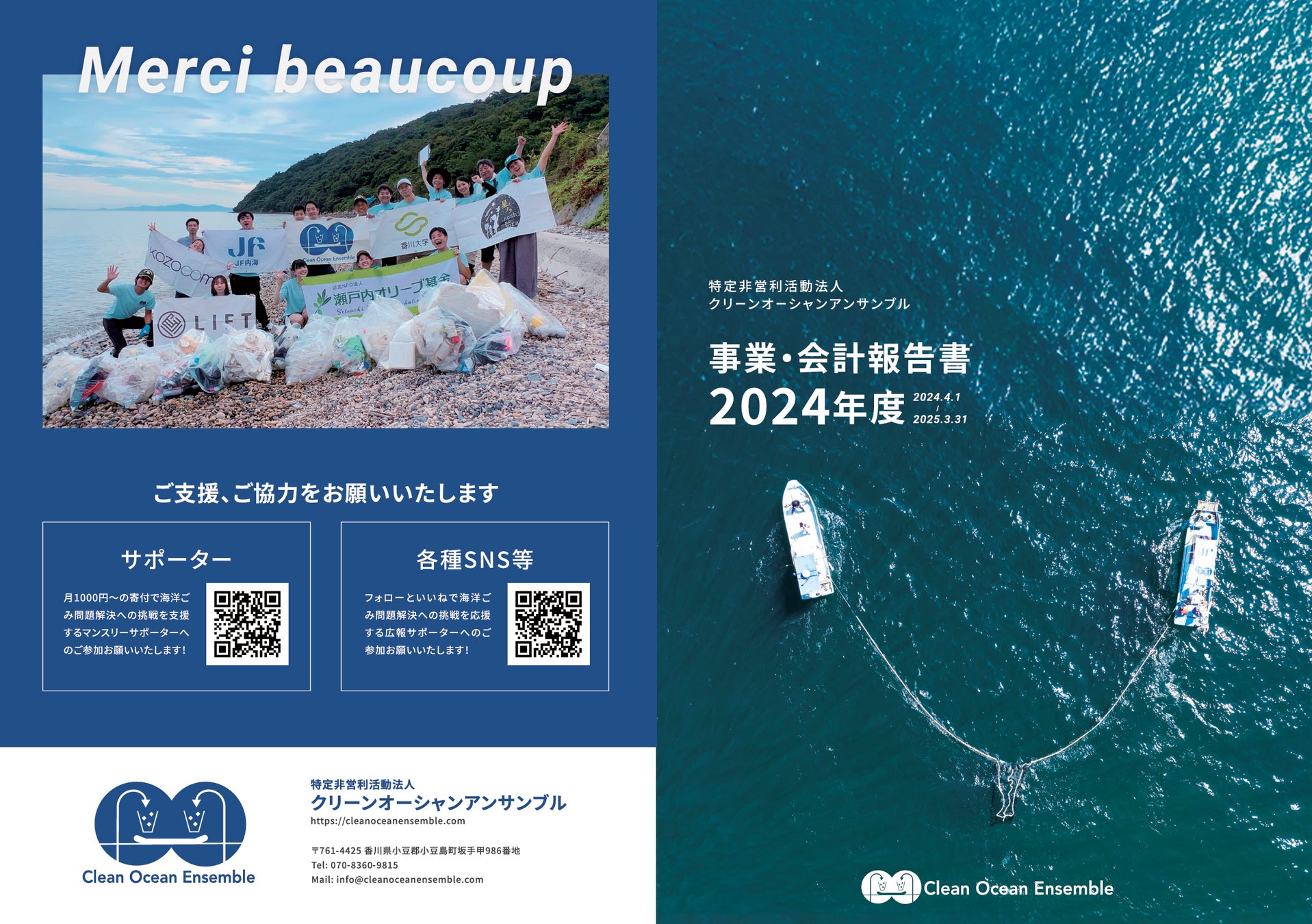 海洋ごみ問題解決に向けて活動するNPO法人クリーンオーシャンアンサンブル(香川県小豆郡小豆島町、代表理事:江川裕基、田中秀典)は、2024年度事業・会計報告書を公開いたしました。