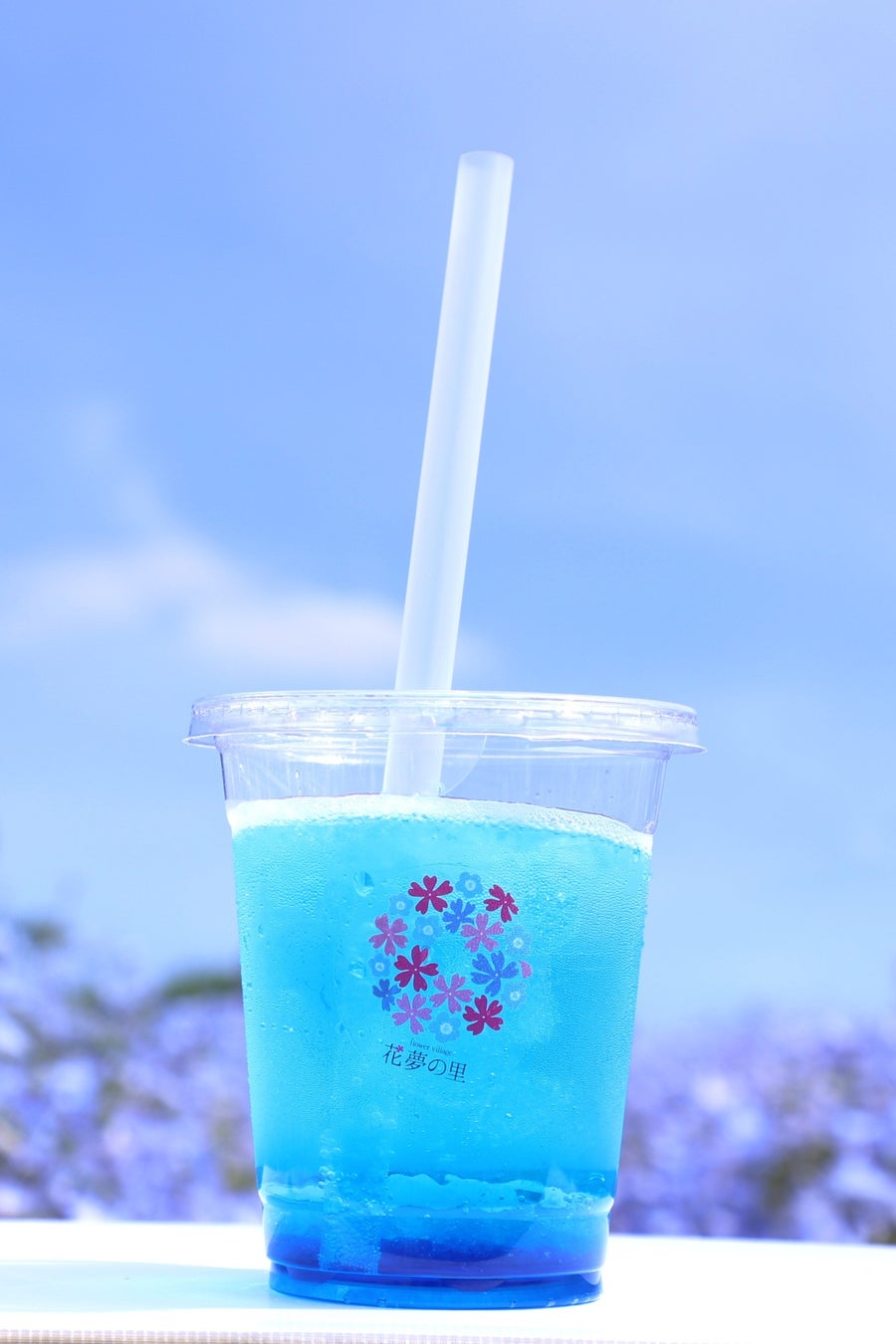 ネモフィラの爽やかなブルーをイメージしたソーダドリンクです。バニラミルクのソフトがのったフロートもあります。