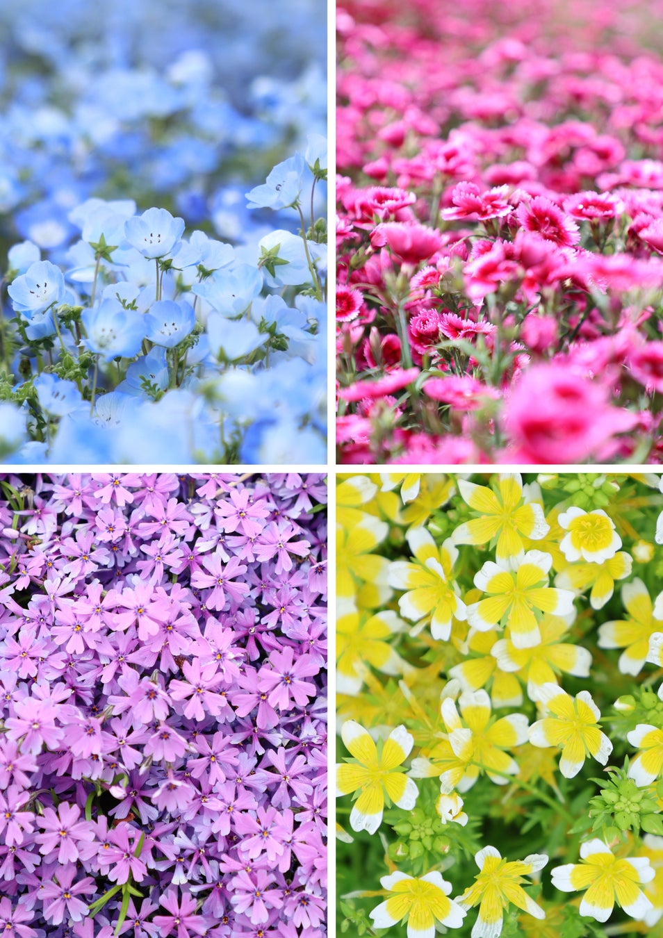 Flower village 花夢の里では、西日本最大級40,000㎡の丘を覆いつくす100万本のネモフィラと、30万株の芝桜で今年もお迎えします。どこまでも広がるブルーとピンクの花の世界へようこそ。新しく登場するエリアもあります。毎年新しい景色に出会える花畑へお越しください。