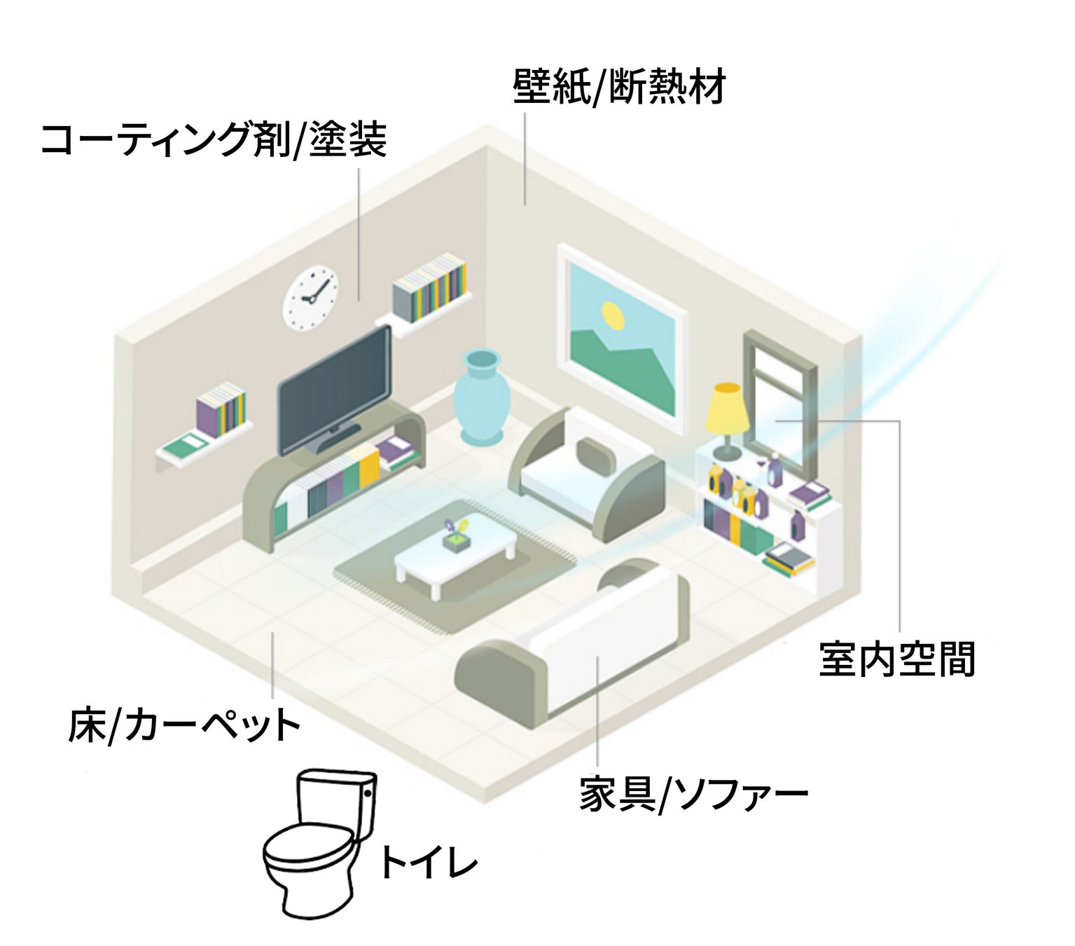 バスルーム、キッチン、リビングエリア車内や日常的に接触する表面。靴箱、クローゼット、ペットエリア