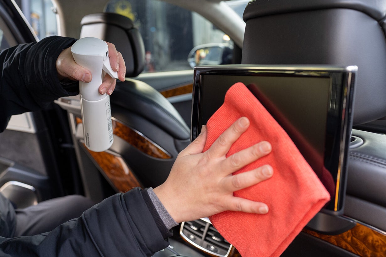 使い方は至って簡単。素材を侵すようなことは無いため、革製品、樹脂、布製品などに直接吹き付けて軽く拭きとるだけで完了できます。