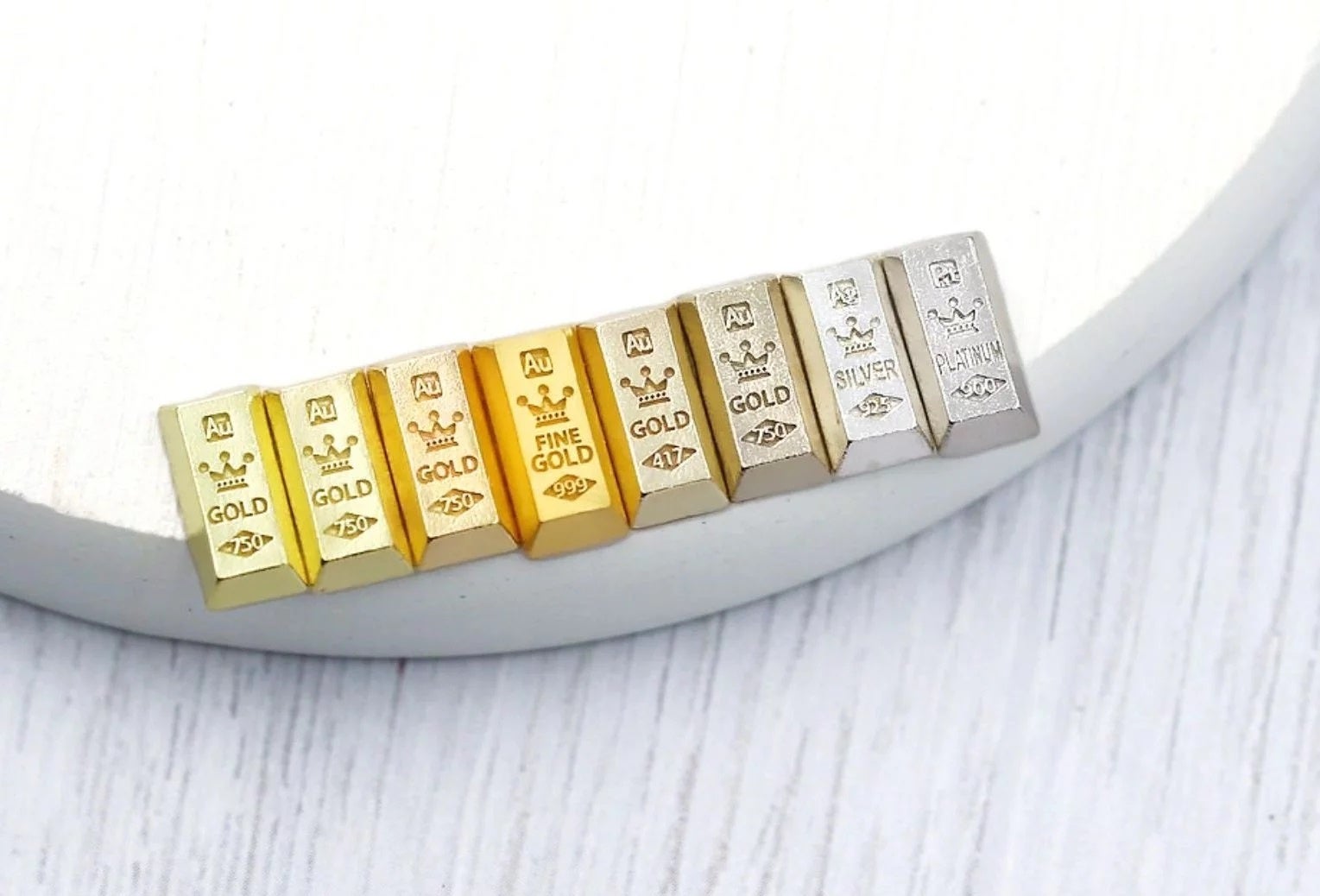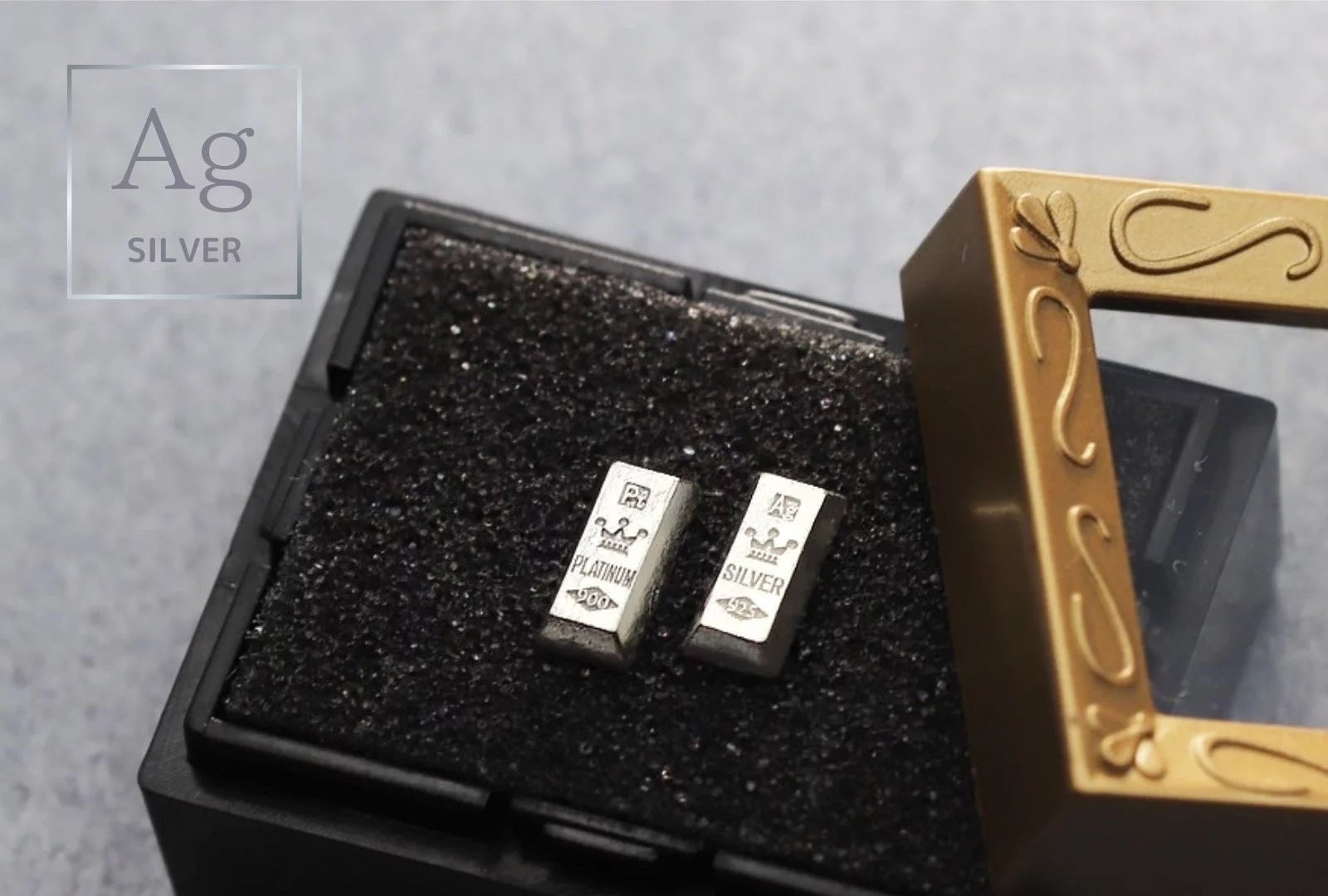 これら8種類の「化学記号」がミニチュアインゴットに刻印されています。これはまさに“本物”の証!
