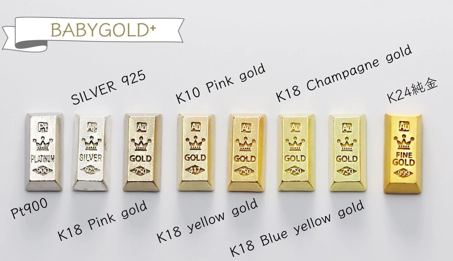 資産価値も持つ1gのかわいい純金としてご好評を得ています【BABYGOLD】ですが、“純金”に加えて、カラフルなK18、K10、日本人に人気のプラチナ、更にはお求めやすいシルバー925も仲間入りしました。