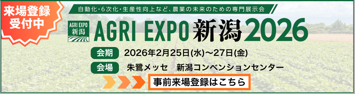 「AGRI EXPO新潟2026」は、農業の課題解決と産業としての発展促進を目的に、2026年に初めて開催される農業の総合展示会です。
