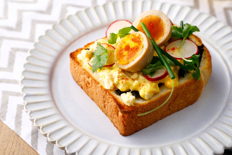 煮卵のだしの風味、タマゴサラダのコク、柚子の清涼感が食パンとマッチ!
