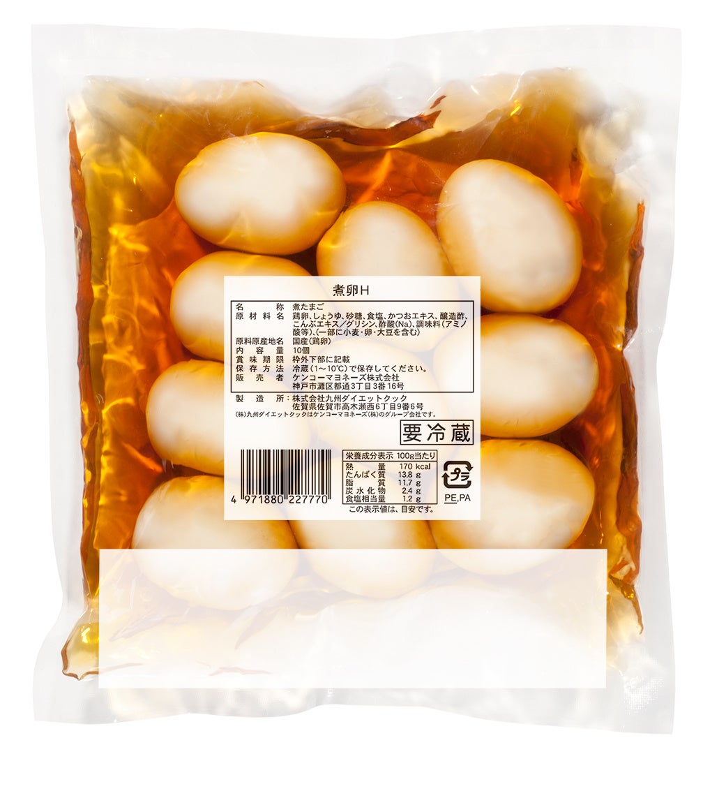 しょうゆをベースにかつおとこんぶの風味をきかせ、様々なメニューとなじみやすい味に仕上げた煮卵です。殻を剥く、味を浸み込ませるといった手間が省けます。