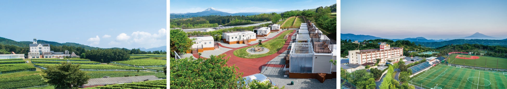 霊峰“富士”を背景に雄大な伊豆山麓に広がる10ヘクタールの畑で、“熱い思い”を持ったぶどう栽培、ワイン醸造の技術者たちが、“いかに伊豆らしいワインをつくるか”を追求しています。ワイナリーにとどまらず、レストランやホテル、グランピング、乗馬場も備えた総合リゾート施設ですので、その時期にしか出会えない美しいぶどう畑の風景とともに、数々の体験を通して優雅なひと時をご堪能ください。