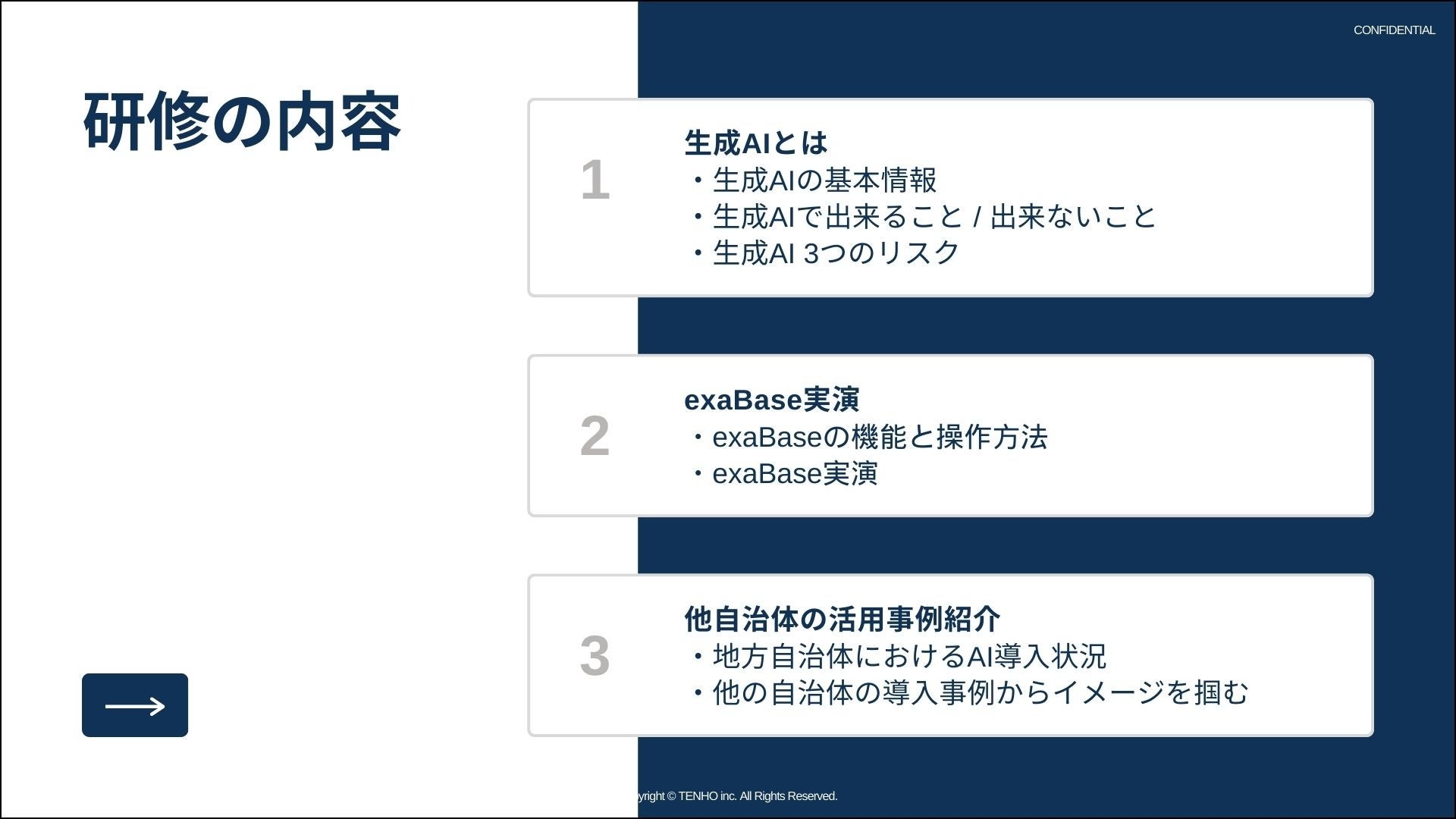 生成AI研修を通じた人材育成は、生成AIの効果を最大限に引き出し、自治体DXの推進を加速させる鍵となります。今後も、自治体が組織全体で生成AI活用を進め、より持続可能な行政運営を実現していくことが期待されます。